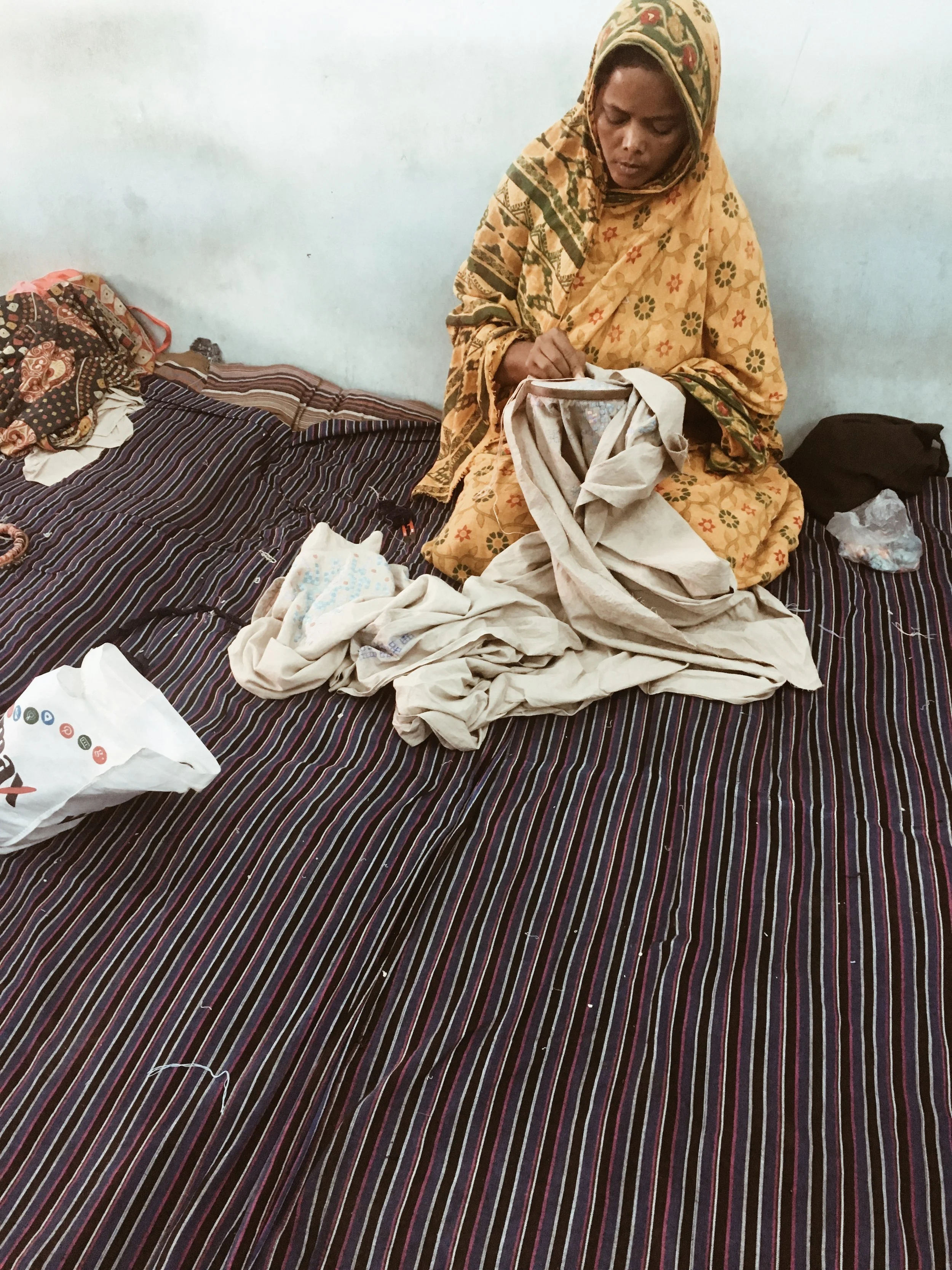 - we got given a small embroidery hoop and a piece of scrap fabric with a design drawn. Although i have done some embroidery in the past it was very challenging! I broke the needle, which was very humorous for the women.
